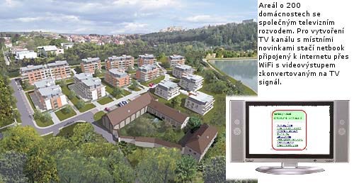 Jedna z možností, jak šířit místní internetovou inzerci, přes TV kanál v areálu developerského projektu